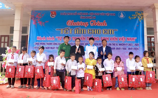 Phát huy vai trò học sinh, sinh viên Nghệ An - Vững bản sắc, giàu khát vọng - Kiến tạo tương lai, dựng xây đất nước, đặc biệt ở những địa bàn khó khăn, các vùng biên giới, vùng sâu, vùng xa, Ban Thường vụ Tỉnh đoàn, Ban Thư ký Hội Sinh viên tỉnh và 9 trường Đại học, Cao đẳng trực thuộc Tỉnh đoàn đã trao tặng 332 áo ấm, 210 gối bông, 60 chăn và 30 rương đựng đồ cho học sinh và điểm trường Tiểu học Huồi Tụ 2 với tổng giá trị 100 triệu đồng.