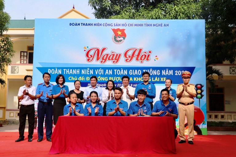 ĐVTN huyện Hưng Nguyên ký cam kết hưởng ứng thực hiện các tiêu chí Năm an toàn giao thông 2020 và những năm tiếp theo