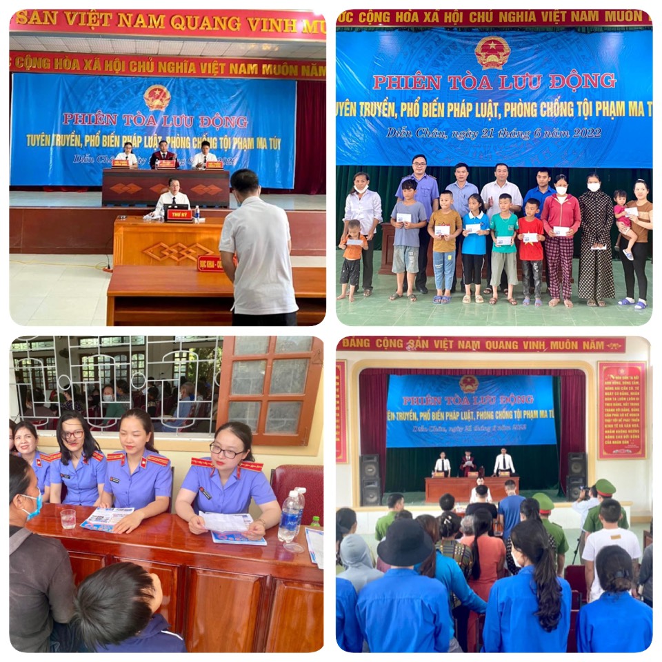 Huyện đoàn Diễn Châu phối hợp với Tòa án nhân dân, Viện kiểm sát Nhân dân huyện tổ chức phiên tòa lưu động tại xã Diễn Lâm và Diễn Yên nhằm tuyên truyền, phổ biến pháp luật, phòng chống tôi phạm ma túy đến đông đảo đoàn viên thanh niên và người dân. Cùng đợt này, Chi đoàn Viện kiểm sát nhân dân tỉnh Nghệ An, Tòa án nhân dân tỉnh Nghệ An phối hợp với Chi đoàn Tòa án, viện kiểm sát, thi hành án dân sự huyện Diễn Châu, tổ chức buổi tuyên truyền, tư vấn pháp luật tại trụ sở UBND xã Diễn Lâm, huyện Diễn Châu cho người dân và trao 11 phần quà cho các trẻ em có hoàn cảnh khó khăn trên địa bàn xã.