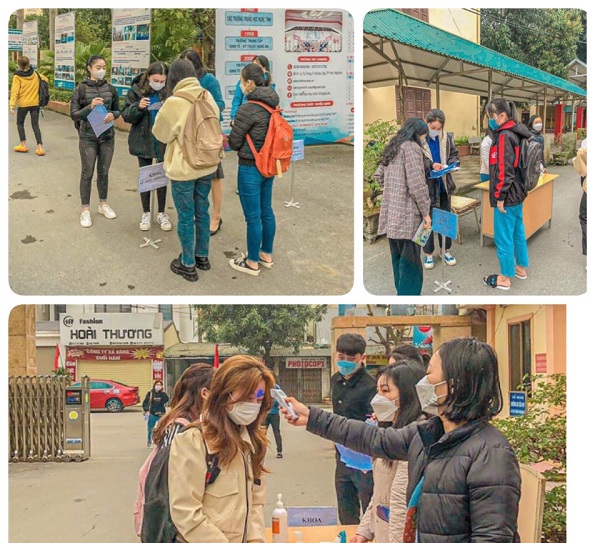 Tổ chức đo thân nhiệt và test sàng lọc Covid-19 cho các em học sinh, sinh viên; nhắc nhở tất cả mọi người thực hiện nghiêm túc nguyên tắc 5K theo quy định của Bộ Y tế; quét mã QR trước khi vào trường