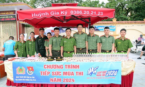 Đồng thời, tại các kỳ thi tuyển sinh vào lớp 10, tốt nghiệp THPT, tuổi trẻ Công an Nghệ An đã thành lập các đội phản ứng nhanh, tổ chức phân luồng giao thông; hỗ trợ các học sinh quên thẻ dự thi, xe hỏng trên đường đi thi; hỗ trợ hàng trăm suất cơm và nước uống miễn phí. Tại các điểm thi, lực lượng đã kết hợp phát tờ rơi tuyên truyền về 10 điểm mới của Luật Căn cước năm 2023 cho phụ huynh thí sinh.
