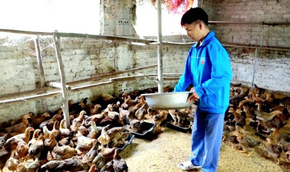 Mô hình chăn nuôi gà của anh Hoàng Kim Vị. Ảnh NVCC