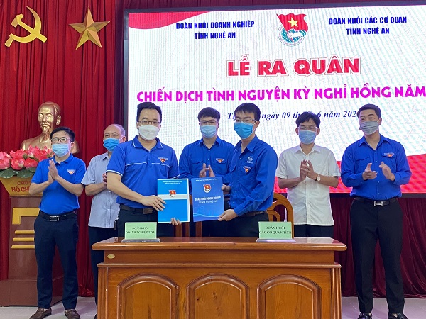 Ngay sau Lễ ra quân, Đoàn khối Các cơ quan tỉnh hưởng ứng Chiến dịch Tình nguyện Kỳ nghỉ hồng năm 2021 với các hoạt động: Ra mắt công trình thanh niên ketnoinongsan.vn; triển khai hỗ trợ tiêu thụ hơn 10 tấn nông sản tại Cục Quản lý thị trường; hỗ trợ 10 triệu đồng xây dựng sân chơi cho thiếu nhi trên địa bàn huyện Thanh Chương.