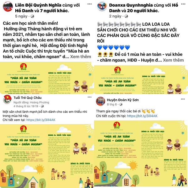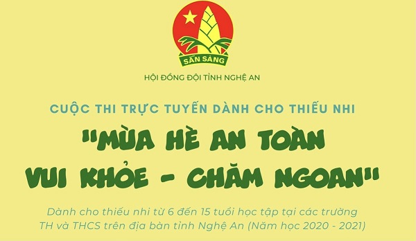 Để những ngày nghỉ hè của thiếu nhi Nghệ An thật sự bổ ích, an toàn, lành mạnh, là thời gian để các em rèn luyện, sáng tạo, tránh sự nhàm chán dù không được gặp gỡ bạn bè, thầy cô, không thể tham gia những hoạt động cộng đồng, tập trung đông người do công tác phòng chống dịch Covid-19, Hội đồng Đội tỉnh Nghệ An tổ chức Cuộc thi trực tuyến “Mùa hè an toàn, vui khỏe, chăm ngoan” dành cho các em thiếu nhi từ 6 đến 15 tuổi trên địa bàn tỉnh Nghệ An.