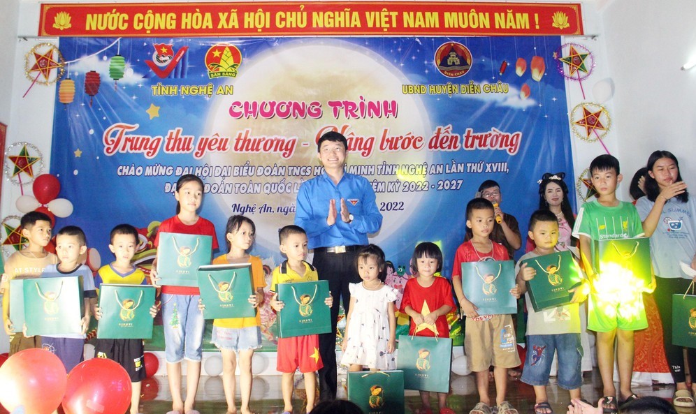 Tối 8/9, Ban Thường vụ Tỉnh đoàn, Hội đồng Đội tỉnh Nghệ An phối hợp với UBND huyện Diễn Châu, Huyện đoàn Diễn Châu tổ chức chương trình Trung thu cho các em nhỏ trên địa bàn xã Diễn Xuân. Dự chương trình có đồng chí Trần Linh - Phó Bí thư Tỉnh đoàn; đại diện UBND huyện, Huyện ủy Diễn Châu, lãnh đạo xã Diễn Xuân, Chùa Cổ Am và các đơn vị, phòng, ban liên quan.