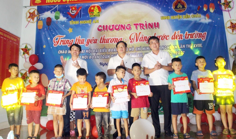 Ghi nhận những nỗ lực vượt khó vươn lên học tập của các em nhỏ trên địa bàn huyện Diễn Châu, Ban Thường vụ Tỉnh đoàn, Huyện đoàn Diễn Châu, UBND huyện Diễn Châu, UBND xã Diễn Xuân và Chùa Cổ Am đã có hơn 40 suất quà ý nghĩa trao tặng đến các em thiếu nhi tại chương trình.
