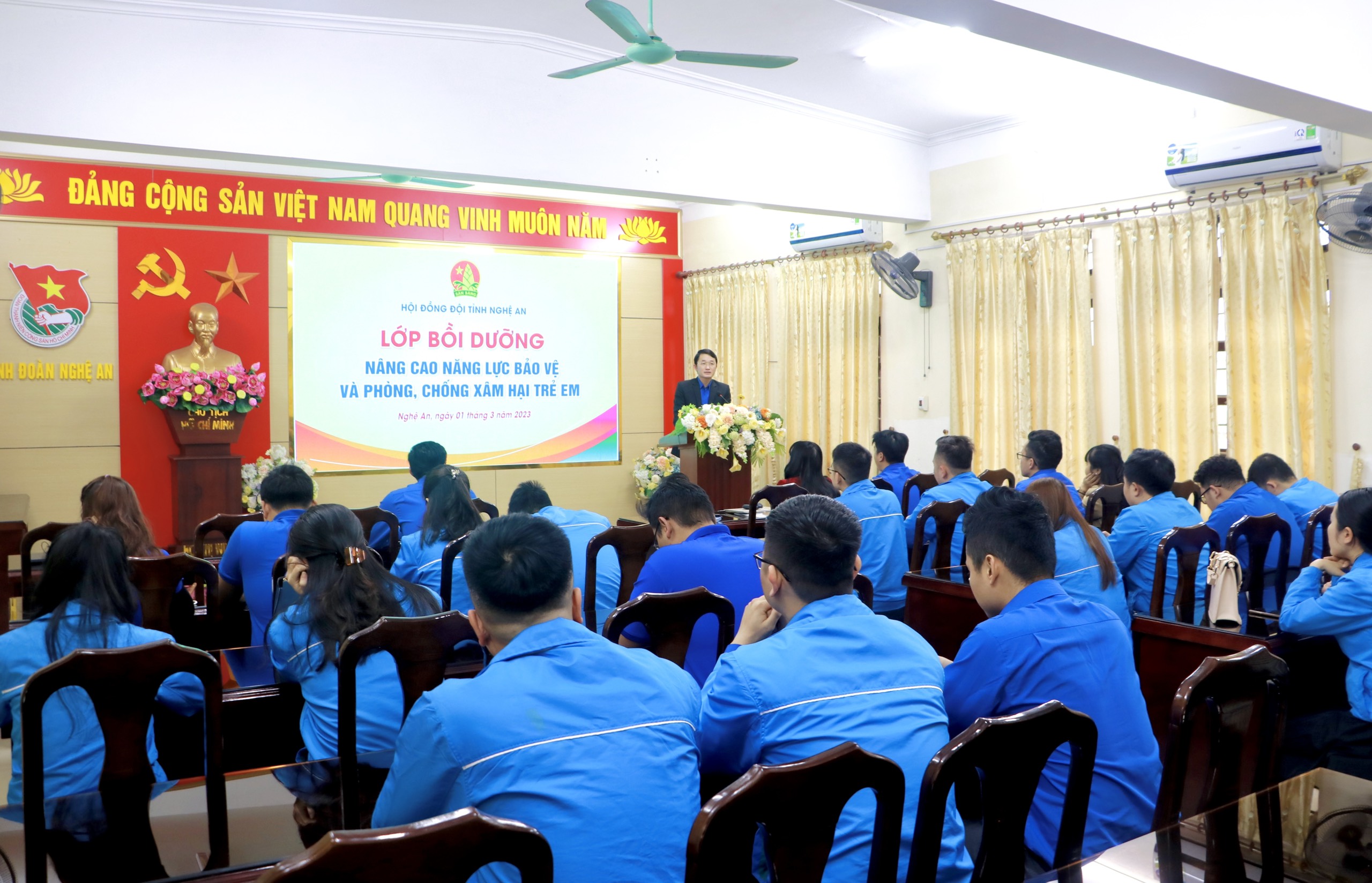 Tới tham dự lớp bồi dưỡng có đồng chí Trần Linh - Phó Bí thư Tỉnh đoàn, Chủ tịch Hội đồng Đội tỉnh; chị Lê Thị Nguyệt – Trưởng phòng trẻ em và bình đẳng giới, Sở Lao động, Thương binh và Xã hội tỉnh Nghệ An; cùng các đồng chí Ủy viên Hội đồng Đội tỉnh, Thường trực Hội đồng Đội các huyện, thành, thị và hơn 500 cán bộ phụ trách công tác thiếu nhi cấp xã tại điểm cầu cấp tỉnh và 20 điểm cầu các huyện, thành, thị.