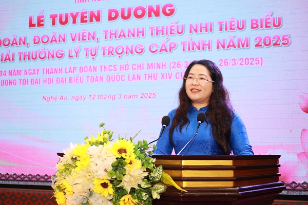 Phát biểu tại buổi lễ, đồng chí Nguyễn Thị Phương Thúy, UV BCH Trung ương Đoàn, Bí thư Tỉnh đoàn nhấn mạnh: “Các bạn trẻ hãy trăn trở, suy nghĩ và đau đáu làm sao để tuổi trẻ góp sức xứng đáng vào sự phát triển của quê hương đất nước, để “khát vọng dòng Lam” hội nhập, vươn xa cùng kỷ nguyên vươn mình của dân tộc, mỗi bạn trẻ hãy là 1 câu chuyện về tinh thần vượt khó, tiên phong, sáng tạo, truyền cảm hứng trong thời đại mới”.