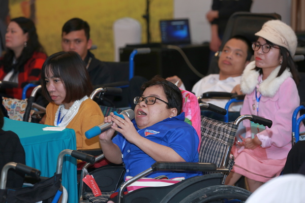 Còn theo đại biểu Nguyễn Thị Đài Trang, Giám đốc Công ty TNHH Trang Đài (tỉnh Hà Tĩnh), chị bị một cơn sốt bại liệt khi 3 tháng tuổi. Khi đi học, chị thường nhờ bạn cõng đi học, nếu không có ai cõng, chị sẽ tự bò tới trường. Cho tới nay đầu gối của chị vẫn còn rất nhiều sẹo do tự mình cố gắng di chuyển. Nhờ nỗ lực, chị đã tốt nghiệp đại học ngành công nghệ thông tin và hiện tại là chủ doanh nghiệp. Chị Trang đề xuất cần có chính sách ưu tiên cho người khuyết tật khởi nghiệp.
