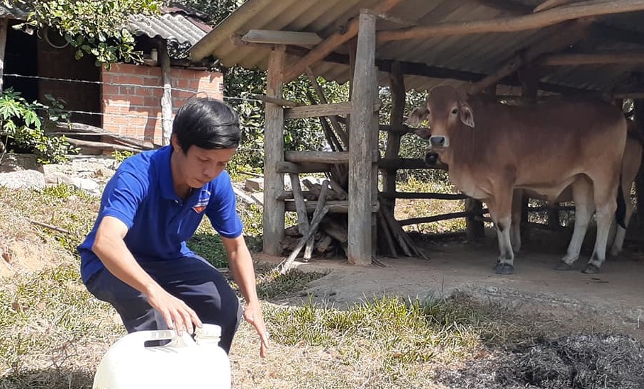 Ngoài trồng keo và điều, anh Nguyên đã tận dụng nguồn cỏ mọc tự nhiên dưới tán điều để nuôi bò. Từ 2 con bò ban đầu, đến nay anh Nguyên đã phát triển đàn bò lên 16 con. Trong đó chủ yếu là bò lai. Nhờ có sự đầu tư chăm sóc và phòng bệnh cho đàn bò nên mỗi năm từ chăn nuôi bò đã mang lại thu nhập cho anh Nguyên khoảng 80 triệu đồng. Hiện nay từ trồng trọt và chăn nuôi, anh Nguyên đã có nguồn thu nhập ổn định gần 200 triệu đồng /năm.
