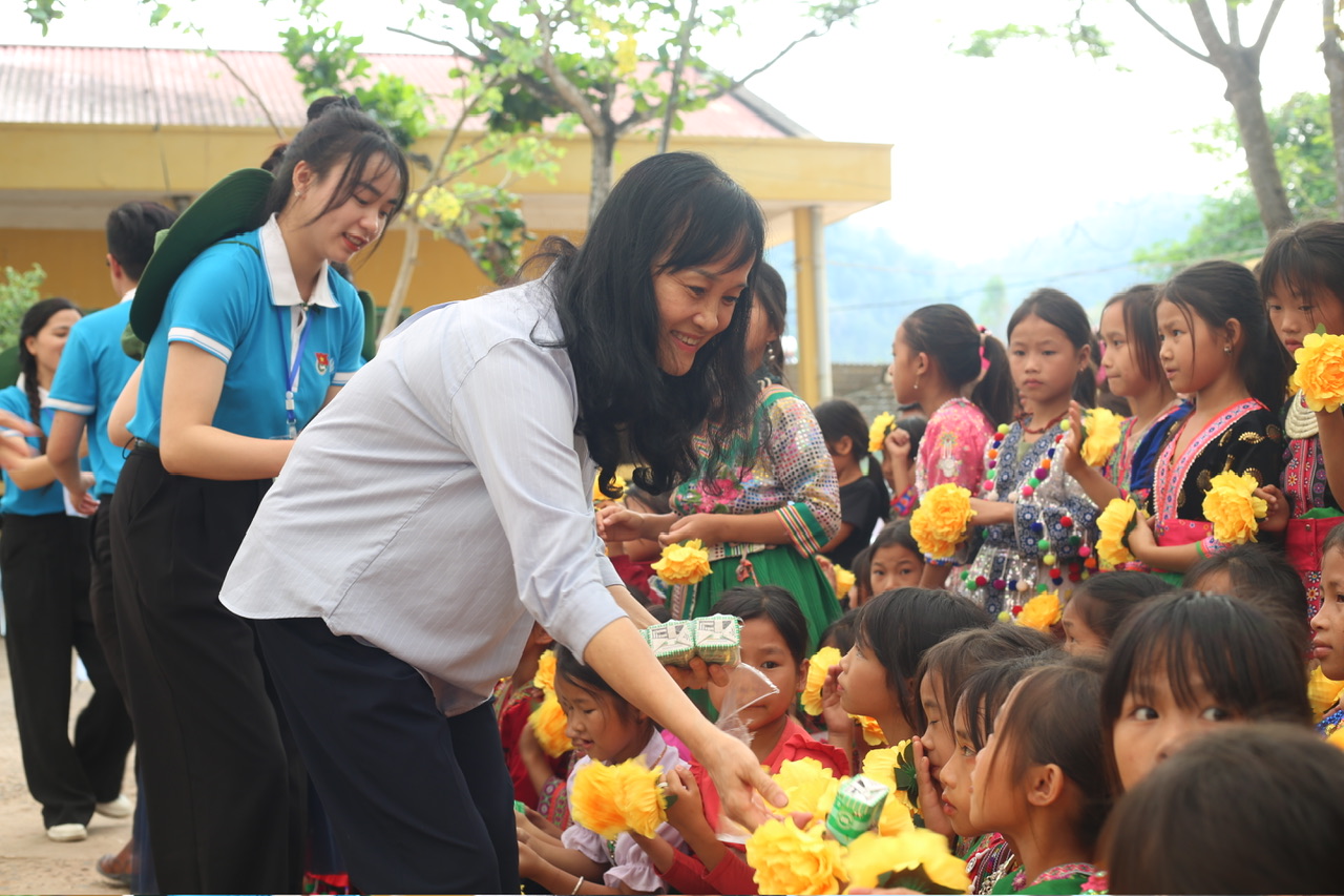Chia sẻ niềm vui với đoàn hành trình, cô Đồng Thị Thúy, Phó hiệu trưởng Trường Phổ thông dân tộc bán trú tiểu học Nậm Vì cho biết, đây là một ngày hạnh phúc của toàn thể giáo viên, học sinh Nậm Vì. Đây là lần đầu tiên, trường được đón đoàn đại biểu tổ chức nhiều hoạt động ý nghĩa như này, các em học sinh háo hức, mong đợi cả tuần nay.