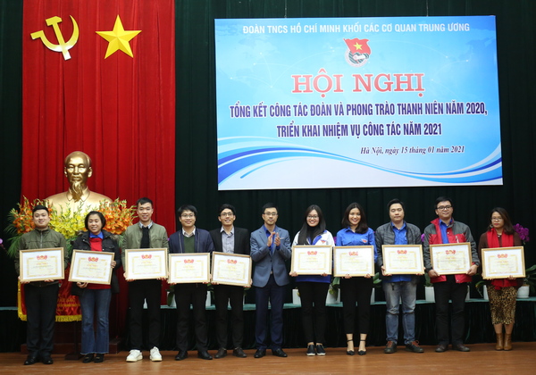 Với kết quả đạt được trong năm 2020, Đoàn Khối đã được Trung ương Đoàn tặng Cờ đơn vị xuất sắc công tác đoàn và phong trào thanh thiếu nhi năm 2020. Tại Hội nghị, Trung ương Đoàn TNCS Hồ Chí Minh đã trao Cờ thi đua xuất sắc của Trung ương Đoàn TNCS Hồ Chí Minh cho 2 đơn vị thuộc Đoàn Khối Các cơ quan Trung ương: Bộ Thông tin và Truyền thông và Học viện Chính trị quốc gia Hồ Chí Minh; trao tặng Bằng khen của Trung ương Đoàn cho 20 tập thể và 25 cá nhân đạt danh hiệu xuất sắc công tác Đoàn và phong trào thanh niên năm 2020.