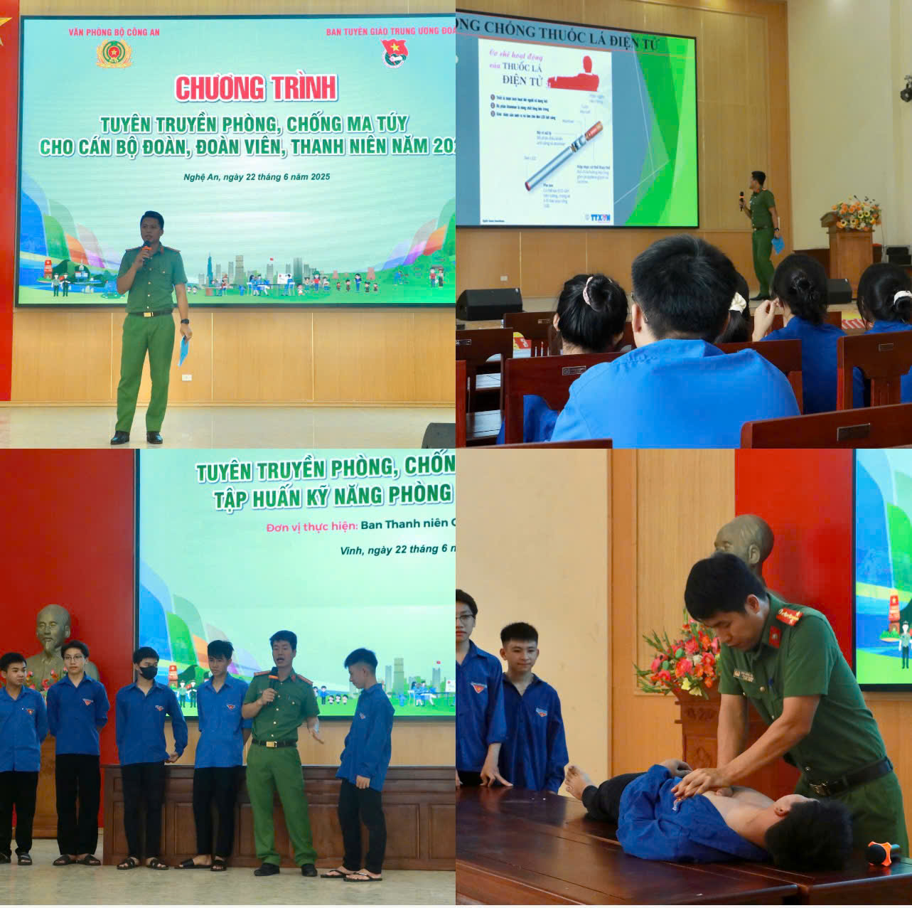 Bên cạnh đó, đoàn viên thanh niên các lực lượng vũ trang đã tổ chức hoạt động khám, tư vấn sức khỏe và cấp phát thuốc miễn phí cho người dân; tuyên truyền phòng, chống ma túy, thuốc lá điện tử; tập huấn kỹ năng phòng, chống đuối nước cho hàng trăm thanh thiếu nhi. 150 suất cơm trưa cũng được trao tận tay các bệnh nhân đang điều trị tại Bệnh viện Đa khoa TP Vinh.