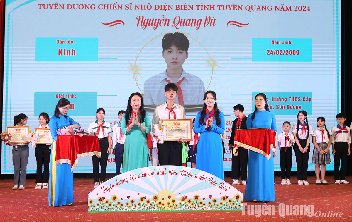 Nhân dịp này, Ban Thường vụ Tỉnh đoàn, Hội đồng Đội tỉnh đã trao 2 giải Nhất, 4 giải Nh, 6 giải Ba, 20 giải Khuyến Khích, 2 giải tập thể tại Cuộc thi vẽ tranh cho thiếu nhi với chủ đề "70 năm chiến thắng Điện Biên Phủ trong em"; đồng thời trao 15 giải Chỉ huy đội giỏi, 15 giải Chỉ huy đội xuất sắc cho các đội viên tiêu biểu thuộc các huyện, thành phố tham gia Hội thi Chỉ huy Đội giỏi tỉnh Tuyên Quang năm 2024.