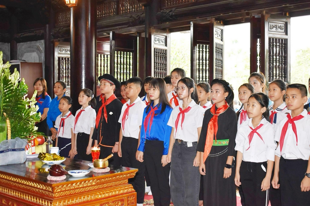 Trước đó, đoàn đại biểu thiếu nhi đã dâng hương, báo công tại đền thờ Chủ tịch Hồ Chí Minh.