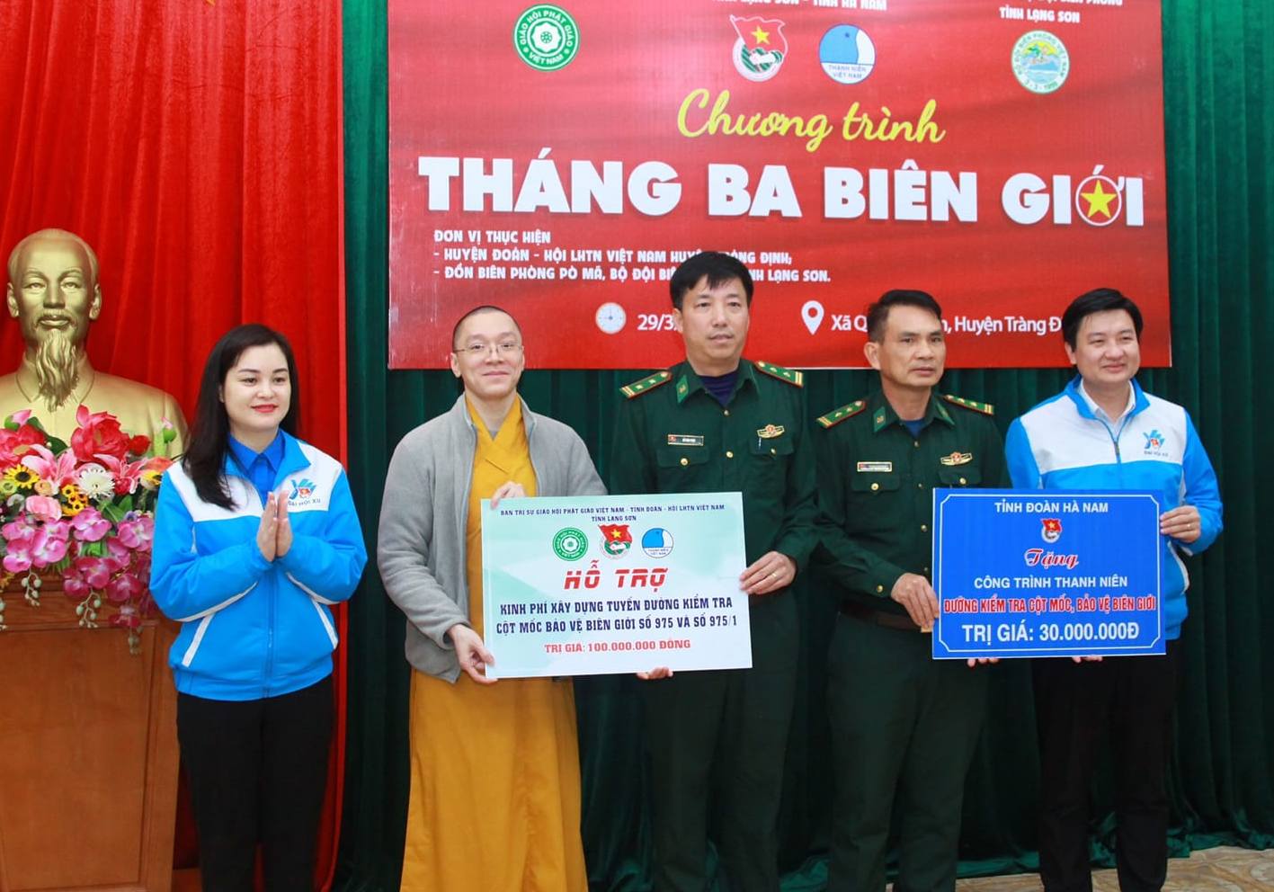 Tại chương trình, Tỉnh đoàn Hà Nam trao tặng kinh phí 30 triệu đồng hỗ trợ xây dựng tuyến đường kiểm tra cột mốc Quốc giới số 975 và 975/1 cho Đồn Biên phòng Pò Mã; Ban Trị sự Giáo hội Phật giáo Việt Nam tỉnh Lạng Sơn, Tỉnh đoàn - Hội LHTN Việt Nam tỉnh Lạng Sơn trao tặng kinh phí 100 triệu đồng hỗ trợ xây dựng đường tuyến đường kiểm tra cột mốc quốc giới tại huyện Tràng Định; đại diện Trường Đại học Sư phạm Hà Nội 2 và Trường Đại học Kinh tế Quốc dân Hà Nội trao tặng hỗ trợ kinh phí thực hiện công trình “Thắp sáng đường thôn” trị giá 20 triệu đồng cho Huyện Tràng Định.
