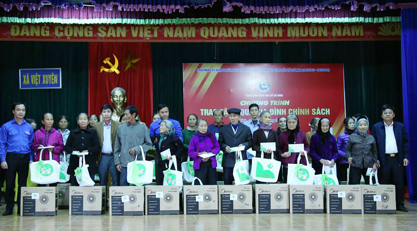 Ban tổ chức trao quà cho các gia đình chính sách xã Việt Xuyên |