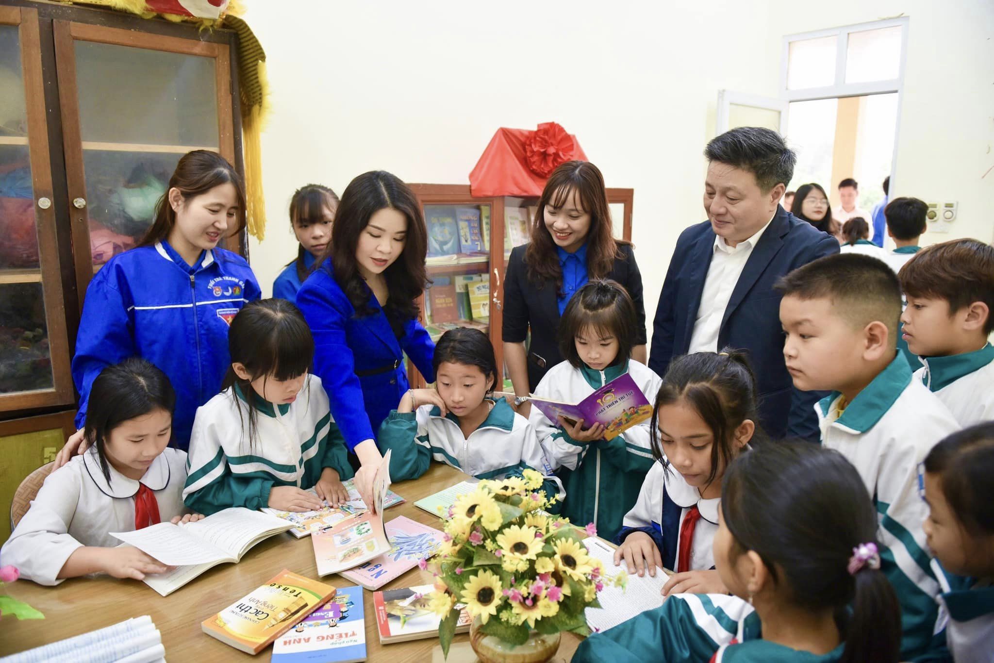 Lãnh đạo Huyện ủy Thanh Oai và Thành đoàn Hà Nội thăm thư viện đọc sách dành cho thiếu nhi.