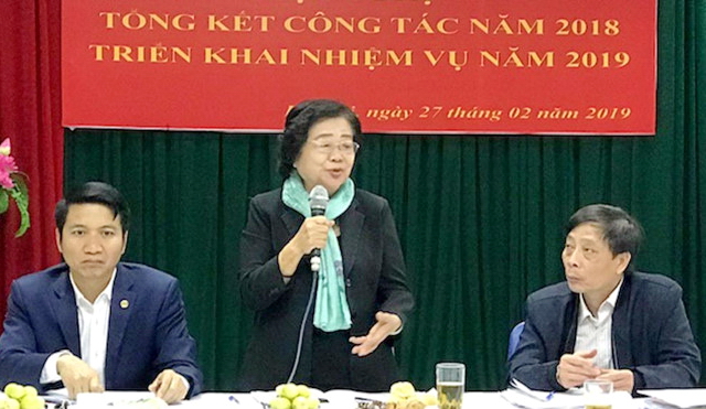 Đồng chí Trương Mỹ Hoa, nguyên Phó Chủ tịch nước, Giám đốc Quỹ học bổng Vừ A Dính chủ trì hội nghị chiều 27/2 |