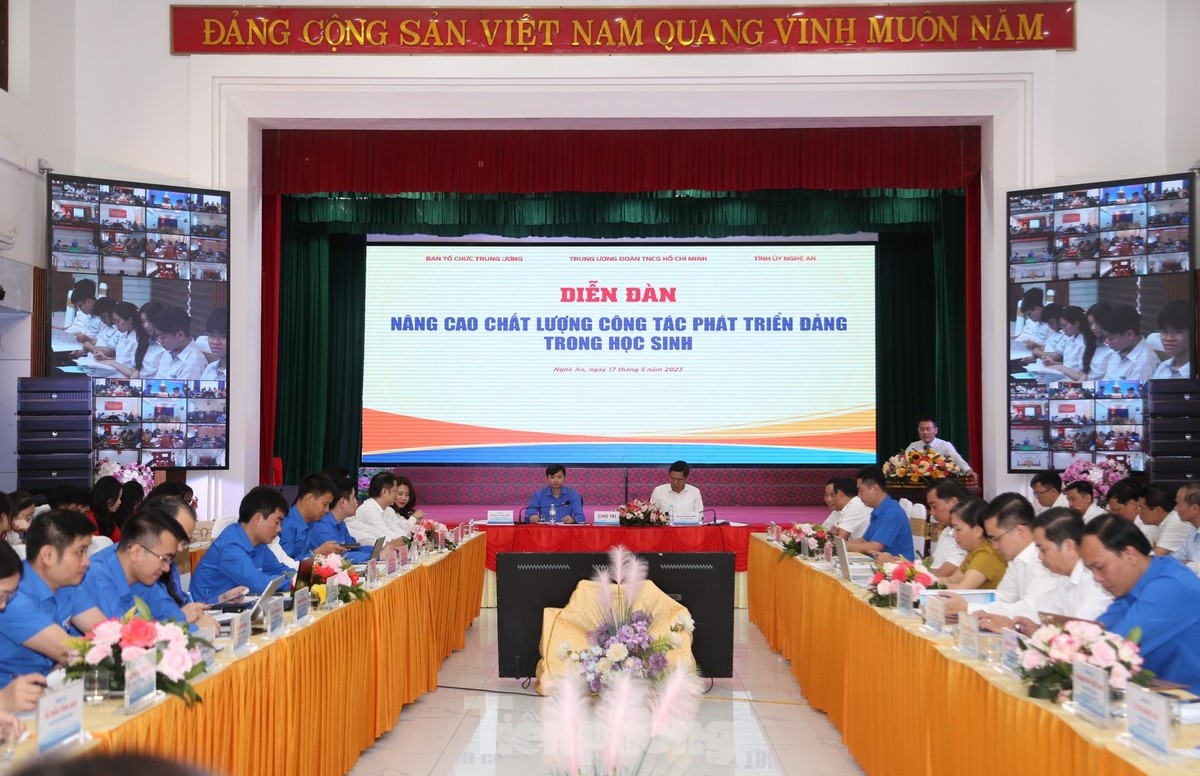 Sáng 17/5, Trung ương Đoàn chủ trì, phối hợp với Ban Tổ chức Trung ương, Tỉnh ủy Nghệ An tổ chức diễn đàn chuyên đề “Nâng cao công tác phát triển đảng trong học sinh”.