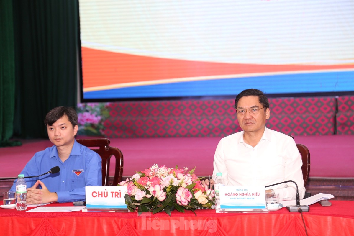 Đồng chí Nguyễn Minh Triết, Bí thư BCH Trung ương Đoàn, Chủ tịch Trung ương Hội Sinh viên Việt Nam và đồng chí Hoàng Nghĩa Hiếu - Phó Bí thư Tỉnh ủy Nghệ An tại diễn đàn.