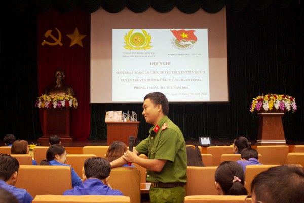 Tại hội nghị, Đại úy Lê Đức Dương, phòng PC 04, Công an tỉnh BR-VT đã thông tin đến các ĐVTN một số nội dung, như: Tình hình tệ nạn ma tuý, tội phạm ma tuý trên địa bàn tỉnh; những kiến thức cơ bản về các loại ma tuý, dấu hiệu của người sử dụng ma tuý, người nghiện ma tuý; những tác hại của ma tuý; tố giác tội phạm ma tuý...