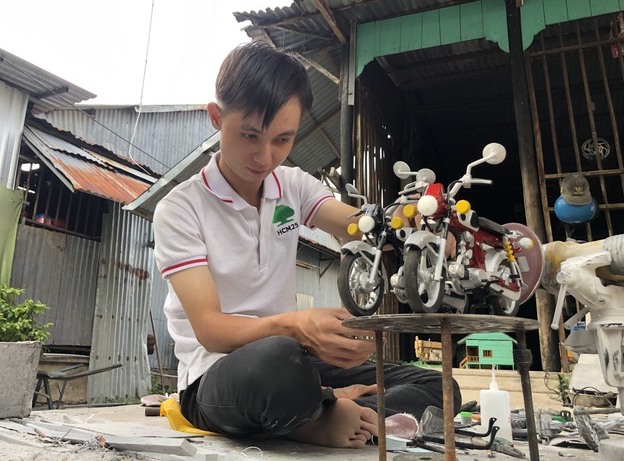 Hiện, Phát còn làm xe mô hình theo yêu cầu khách hàng, chỉ cần nhìn thấy mẫu là Phát làm được. Xe mô hình do Phát làm ra được nhiều người ưa thích bởi độ tỉ mỉ từng chi tiết, độ bền cao và màu sắc được phối hài hòa, đẹp mắt.