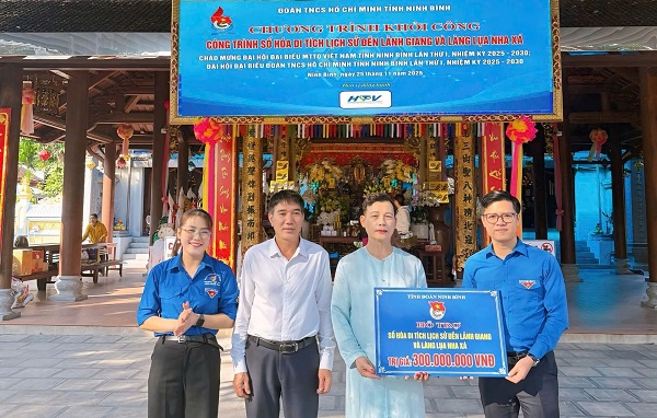 Tại phường Duy Tân, đồng chí Vũ Trần Tùng Anh - Phó Bí thư Tỉnh đoàn, Chủ tịch Hội LHTN Việt Nam tỉnh đã trao tặng 02 công trình Số hóa di tích lịch sử Đền Lảnh Giang và Làng lụa Nha Xá bằng công nghệ VR360 trị giá 300 triệu đồng.