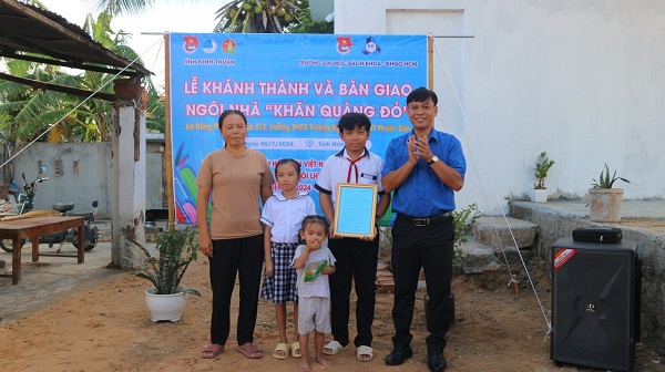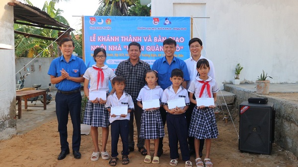 ĐTN: Sáng 6/7, tại khu phố 13, thị trấn Phước Dân, huyện Ninh Phước, Tỉnh Đoàn, Hội LHTN Việt Nam, Hội đồng Đội tỉnh phối hợp với Đoàn trường Đại học Bách khoa- Đại học Quốc gia Hồ Chí Minh tổ chức Lễ bàn giao “Nhà khăn quàng đỏ” cho gia đình em Đàng Phú Ivan và em Đàng Nhật Hà Ni.