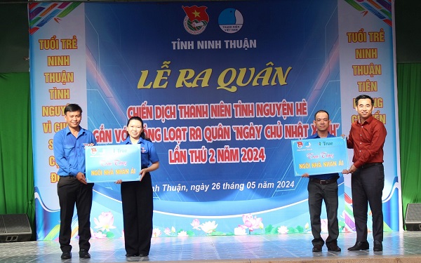 Tại buổi Lễ ra quân Chiến dịch TNTN hè năm 2024, Ban Tổ chức chương trình trao tặng 02 ngôi “Nhà nhân ái” (trị giá 60.000.000đ/ căn) cho 02 hộ gia đình có hoàn cảnh khó khăn tại huyện Thuận Nam và huyện Ninh Sơn; 02 mô hình kinh tế “Vườn cây sinh kế - Bảo vệ môi trường” cho thanh niên xã Phước Hòa, huyện Bác Ái.