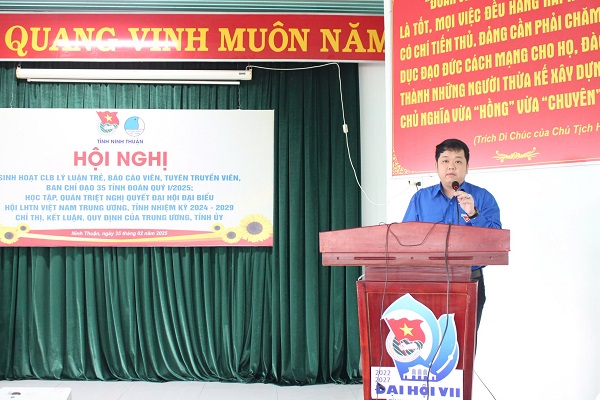 Đồng chí Lưu Xuân Vũ, Phó Bí thư Thường trực Tỉnh đoàn báo cáo các Nghị quyết, Chỉ thị quan trọng của T.Ư, Tỉnh ủy.