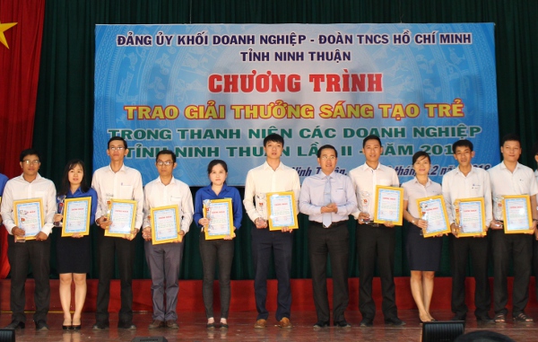 Ngày 26/12, tại Trung tâm hoạt động Thanh thiếu niên tỉnh, Tỉnh Đoàn phối hợp với Đảng ủy khối Doanh nghiệp tổ chức Lễ trao giải thưởng “Sáng tạo trẻ” trong thanh niên các doanh nghiệp tỉnh Ninh Thuận lần II-năm 2018.