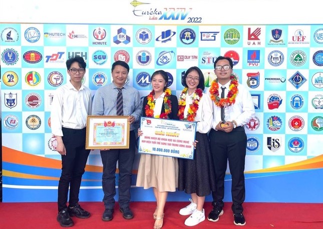 Nguyễn Quỳnh Giang (thứ 2 từ bên phải) tham gia Lễ trao giải Giải thưởng sinh viên nghiên cứu khoa học Euréka năm 2022