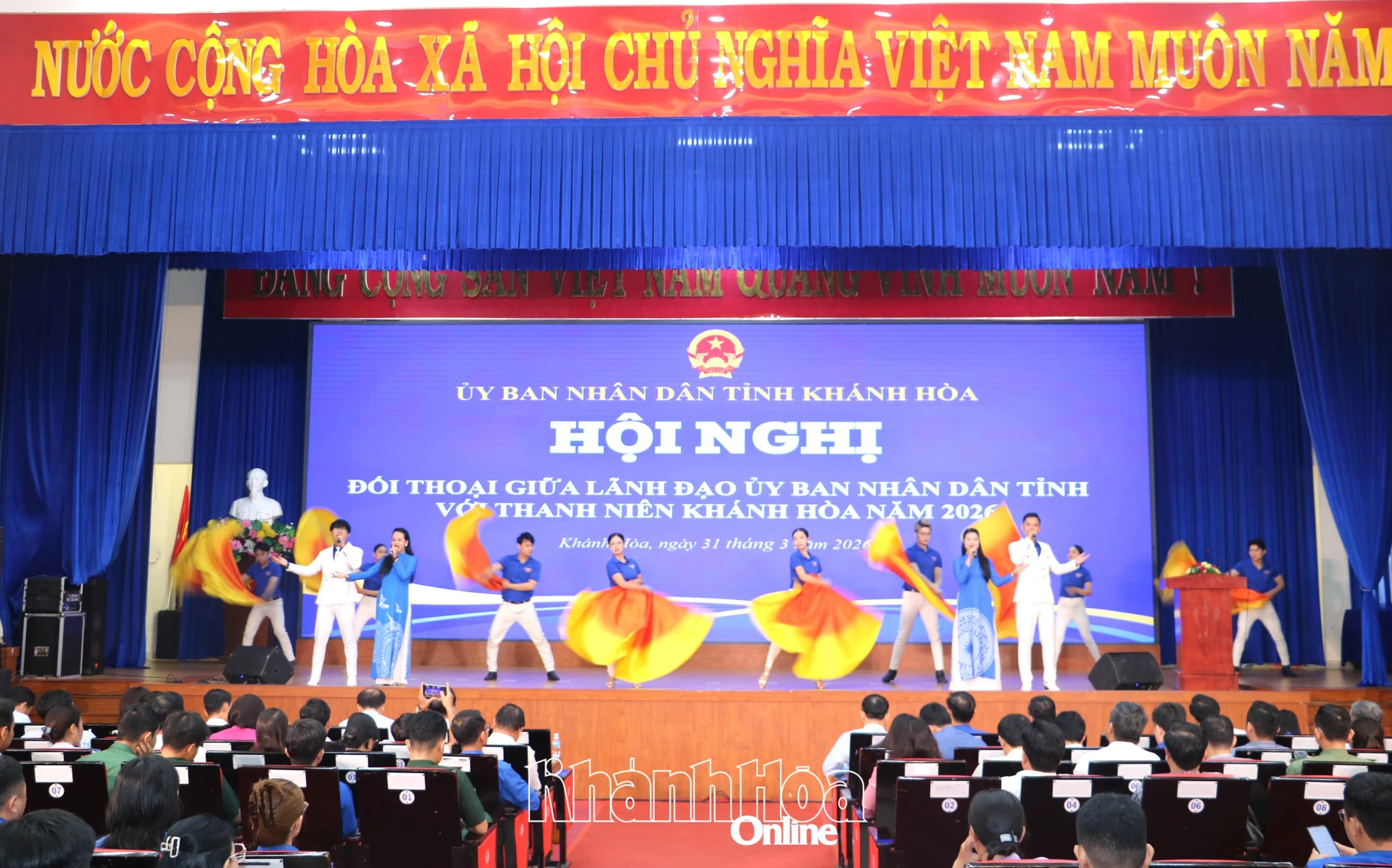 Sáng 31-3, UBND tỉnh Khánh Hòa tổ chức Hội nghị đối thoại giữa lãnh đạo UBND tỉnh với thanh niên Khánh Hòa năm 2026. Đồng chí Nguyễn Thanh Hà - Phó Chủ tịch UBND tỉnh và lãnh đạo Sở Nội vụ, Tỉnh đoàn chủ trì hội nghị. Lãnh đạo các sở, ban, ngành và hơn 220 đại biểu thanh niên đại diện cho hơn 420.000 đoàn viên, thanh niên trên toàn tỉnh tham dự.