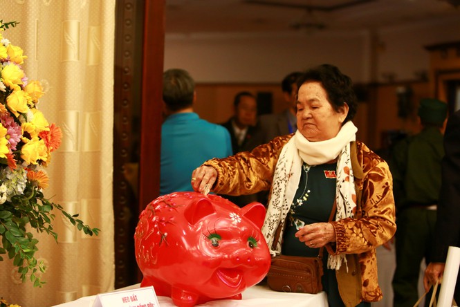 Các đại biểu dự Đại hội không tặng hoa, chỉ tặng quà cho heo đất "Quỹ nghĩa tình đồng đội" |