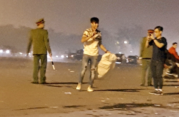Tuyển thủ Phan Văn Đức nhặt rác ở phía ngoài SVĐ Mỹ Đình
