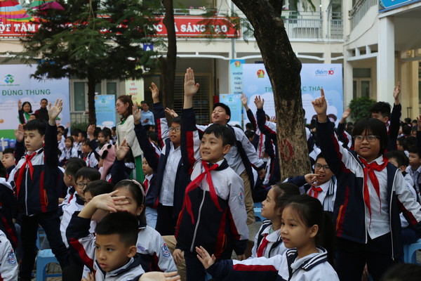 Học sinh trường Tiểu học Phương Liệt hào hứng hưởng ứng chương trình
