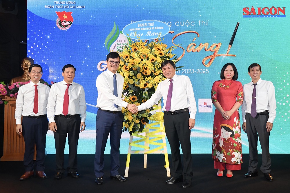 Bí thư thứ nhất T.Ư Đoàn Bùi Quang Huy; Phó Bí thư Thành ủy TPHCM Nguyễn Hồ Hải và Tổng Biên tập Báo SGGP Tăng Hữu Phong trao giải Nhất cuộc thi Tỏa sáng giá trị Việt năm 2022- 2023 cho tác phẩm "Người không mang nhiệm vụ" của tác giả Minh Nguyễn