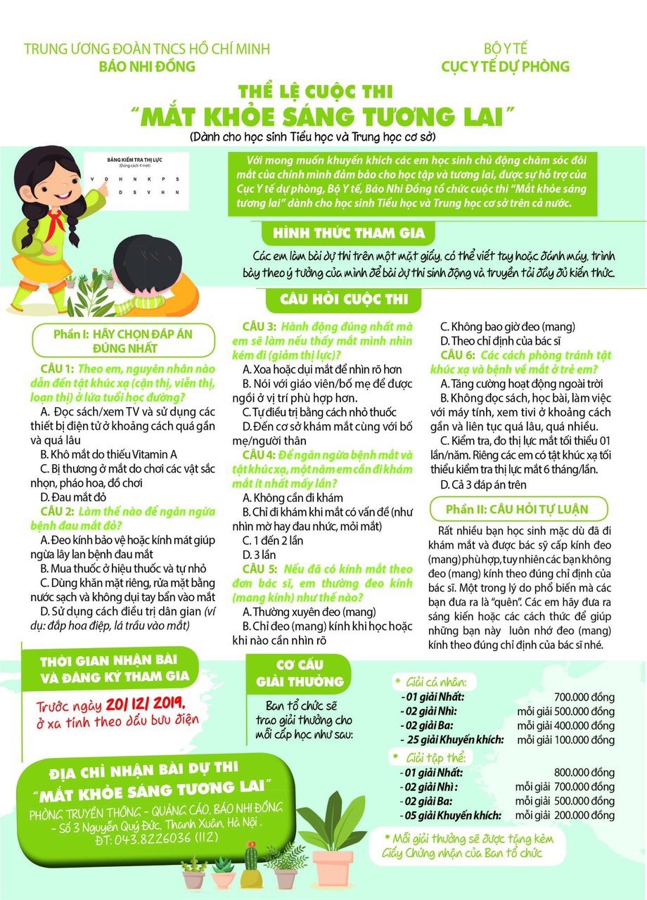 Phát biểu tại lễ phát động cuộc thi, Nhà Báo Phan Việt Hùng, Phó tổng Biên tập Báo Nhi đồng cho biết, mong muốn của Ban tổ chức khi thực hiện cuộc thi này là tuyên truyền trực tiếp tới các em nhỏ những kiến thức cơ bản để ngăn ngừa, phòng tránh tật khúc xạ và bệnh về mắt ở trẻ em, khuyến khích các em học sinh chủ động chăm sóc đôi mắt của chính mình đảm bảo cho học tập và tương lai, từ đó chung tay góp phần vì một thế hệ trẻ Việt Nam khỏe mạnh, tự tin, năng động.