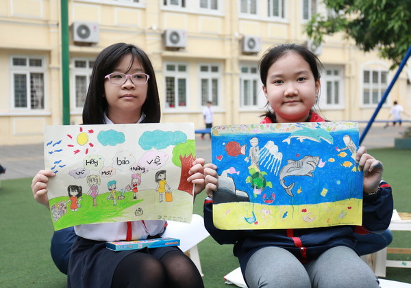 Tác phẩm "Hãy bảo vệ môi trường" được các em học sinh trường Tiểu học Trung Yên (Hà Nội) tham gia vẽ tranh hưởng ứng cuộc thi