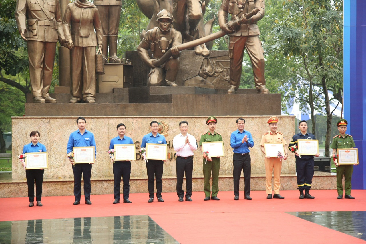 Tại Lễ phát động, Ban tổ chức đã tuyên dương đơn vị điển hình trong công tác bảo đảm trật tự an toàn giao thông và phòng cháy, chữa cháy năm 2023; trao tặng 30 phần quà cho đoàn viên, thanh niên, học sinh có hoàn cảnh khó khăn là con các gia đình có nạn nhân bị tai nạn giao thông, nạn nhân trong vụ cháy tại Thanh Xuân, Hà Nội; tặng thẻ, sổ bảo hiểm của đơn vị đồng hành.
