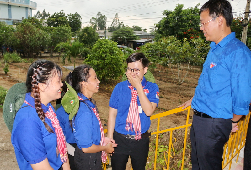 Đồng chí Lê Quốc Phong - Bí thư thứ nhất TƯ Đoàn trò chuyện thăm hỏi các bạn thanh niên tình nguyện
