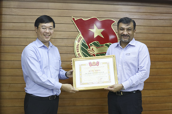 Bí thư thứ nhất Trung ương Đoàn Lê Quốc Phong trao Bằng khen cho Công ty TNHH Nước giải khát Suntory PepsiCo Việt Nam