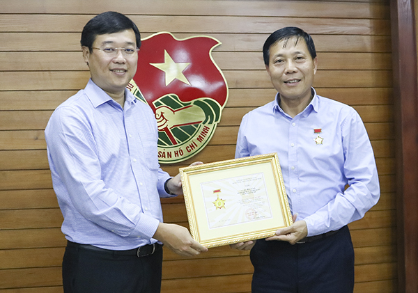 Bí thư thứ nhất Trung ương Đoàn Lê Quốc Phong trao Kỷ niệm chương " Vì thế hệ trẻ" - phần thưởng cao quý của BCH Trung ương Đoàn TNCS Hồ Chí Minh cho ông Lê Mạc Linh, Phó Tổng Giám đốc Công ty TNHH Nước giải khát Suntory PepsiCo Việt Nam