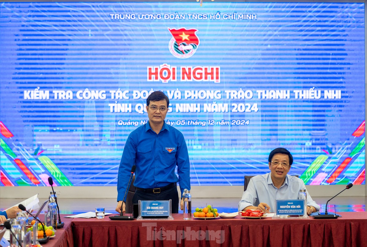 Phát biểu kết luận buổi làm việc, đồng chí Bùi Quang Huy, Ủy viên dự khuyết Trung ương Đảng, Bí thư thứ nhất Trung ương Đoàn ghi nhận những kết quả nổi bật trong công tác đoàn và phong trào thanh thiếu nhi của tỉnh Quảng Ninh trong năm 2024 với chủ đề công tác năm “thanh niên tình nguyện” và những đóng góp, góp ý của các đại biểu tại hội nghị.