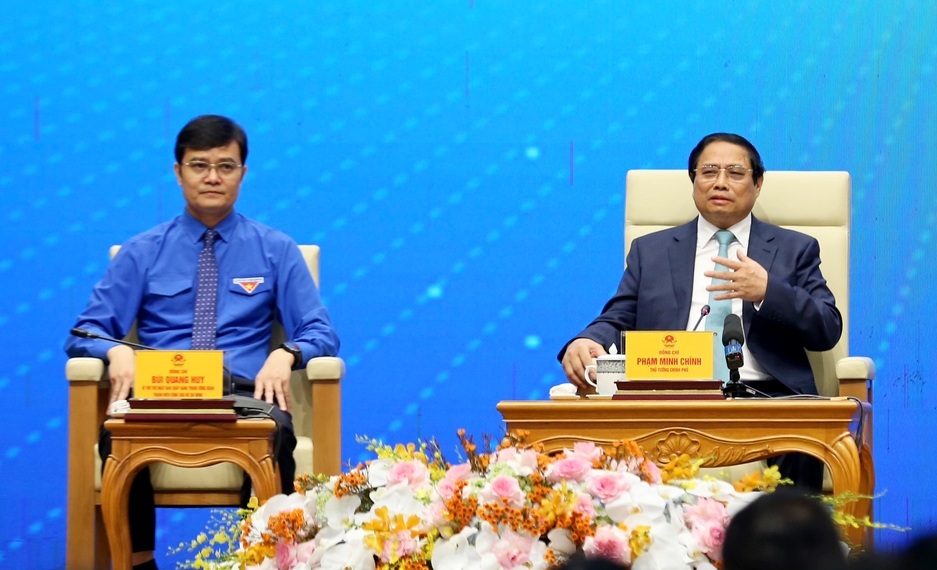 Phát biểu kết luận, Thủ tướng Phạm Minh Chính trước hết trân trọng chuyển lời chào trân trọng, lời thăm hỏi ân cần, lời chúc mừng tốt đẹp nhất của Tổng Bí thư Nguyễn Phú Trọng tới đoàn viên, thanh niên cả nước nhân kỷ niệm 93 năm Ngày thành lập Đoàn TNCS Hồ Chí Minh.