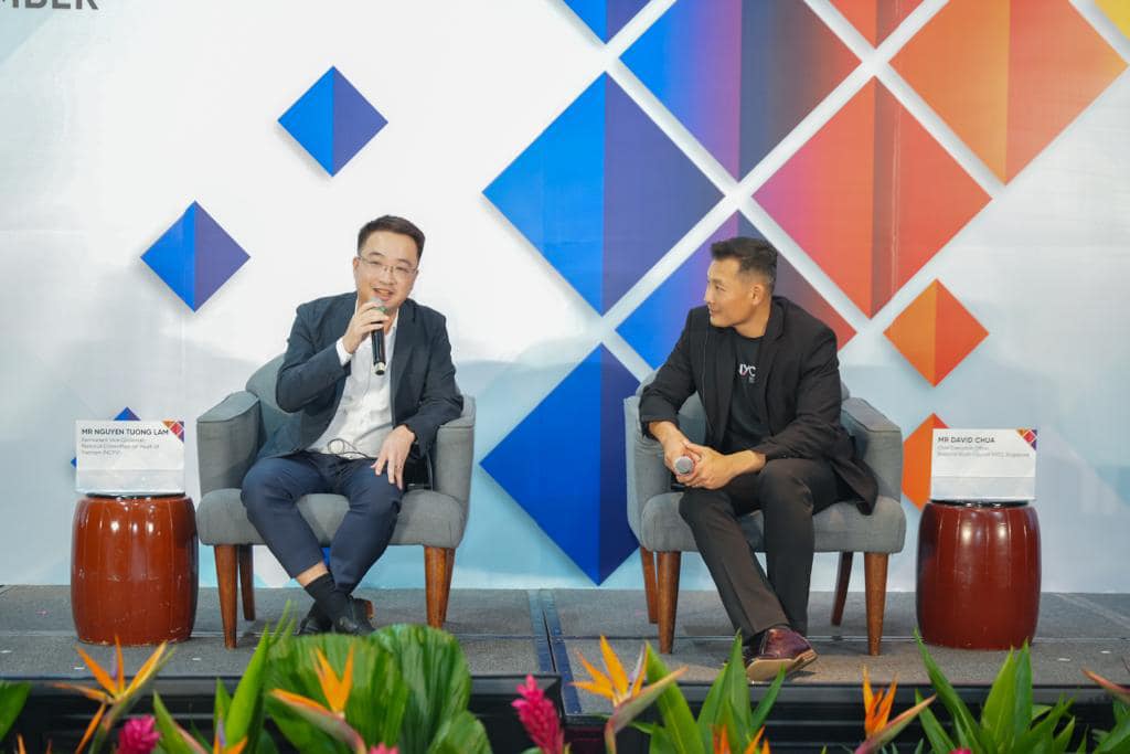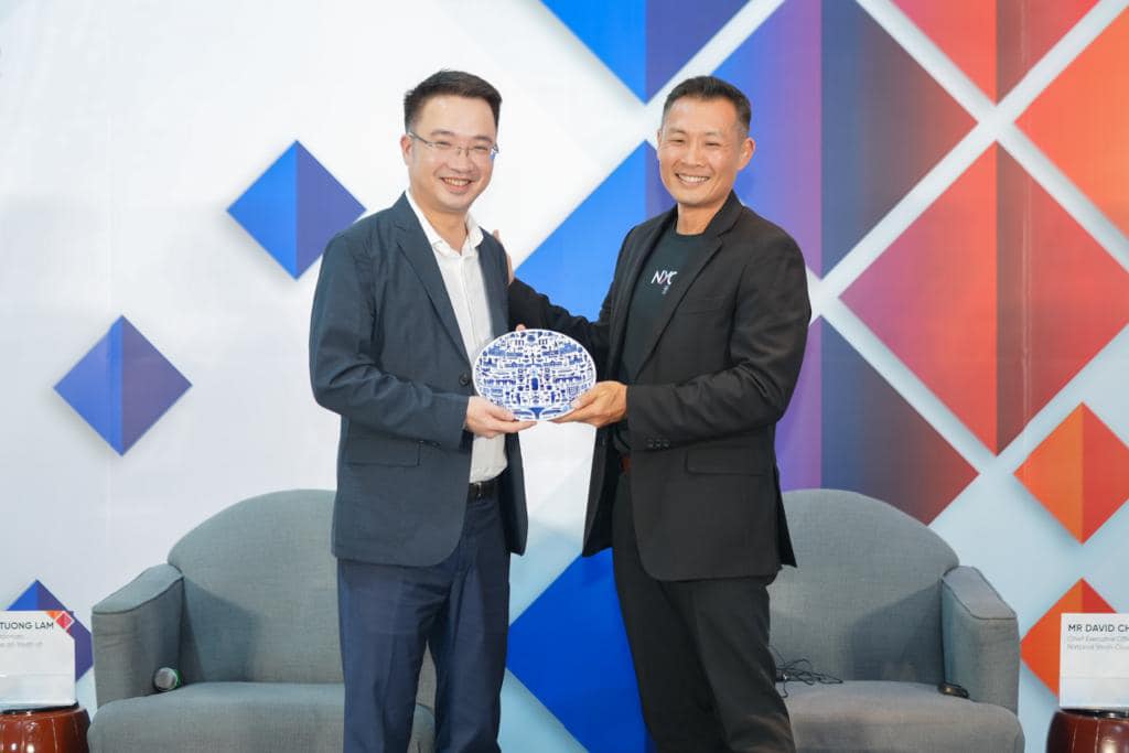 Đồng chí Nguyễn Tường Lâm - Bí thư BCH Trung ương Đoàn TNCS Hồ Chí Minh, Phó Chủ nhiệm Uỷ ban quốc gia về thanh niên Việt Nam và ông David Chua - Giám đốc điều hành Hội đồng thanh niên quốc gia Singapore tại Phiên đối thoại