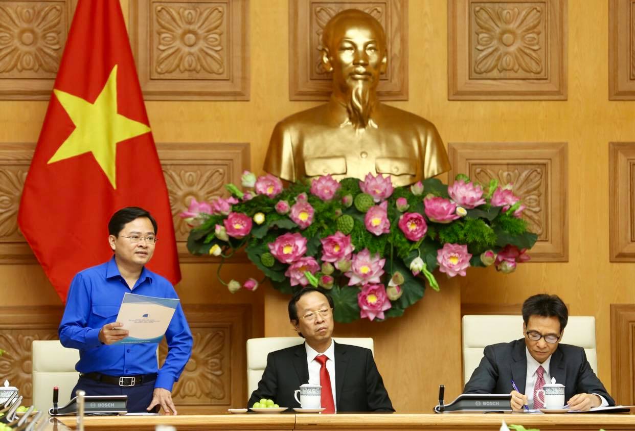 Bí thư Thứ nhất TƯ Đoàn, Chủ tịch Hội LHTN Việt Nam báo cáo với Phó Thủ tướng tại buổi gặp mặt