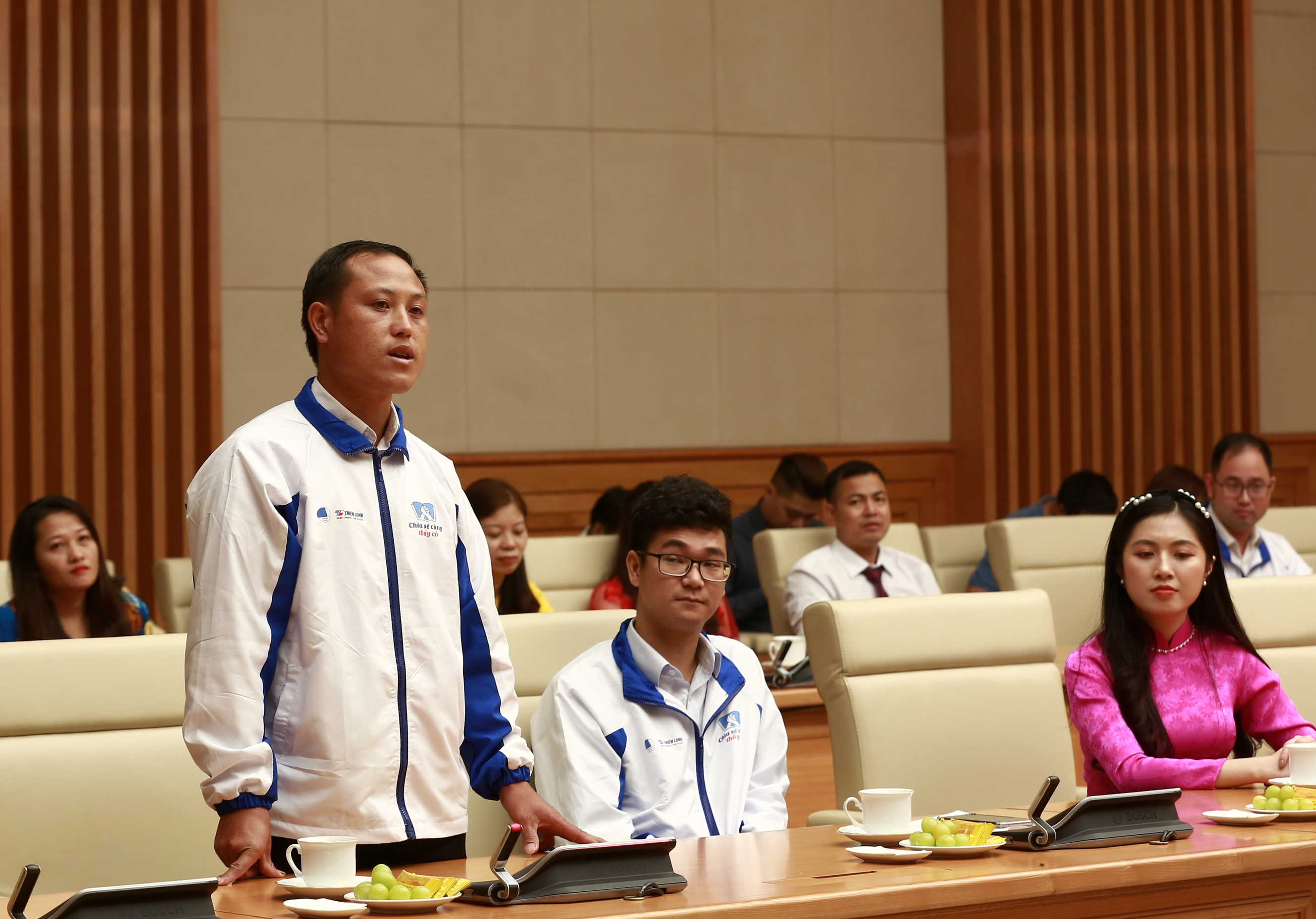 Báo cáo với Phó Thủ tướng Vũ Đức Đam, đồng chí Nguyễn Kim Quy - Phó Chủ tịch Hội LHTN Việt Nam cho biết, được tổ chức từ năm 2015 đến nay, Chương trình "Chia sẻ cùng thầy cô" đã lựa chọn và tôn vinh hơn 400 giáo viên của nhiều nhóm lĩnh vực. Năm nay, Hội đồng xét chọn đã lựa chọn 68 gương giáo viên tiêu biểu xuất sắc để tuyên dương. Đó là những thầy giáo, cô giáo có thành tích nổi bật, có học sinh tham gia và giành giải thưởng tại các cuộc thi học sinh giỏi cấp quốc gia, quốc tế; có nhiều sáng kiến đổi mới việc dạy và học đã được áp dụng vào thực tế và đạt kết quả cao; thầy cô đang công tác tại vùng sâu vùng xa, biên giới, hải đảo, vùng có điều kiện kinh tế - xã hội khó khăn hoặc đã từng tham gia giảng dạy có thành tích tiêu biểu, xuất sắc trong thời gian công tác được xã hội ghi nhận.