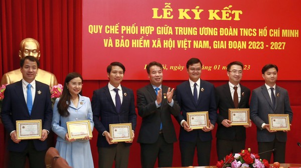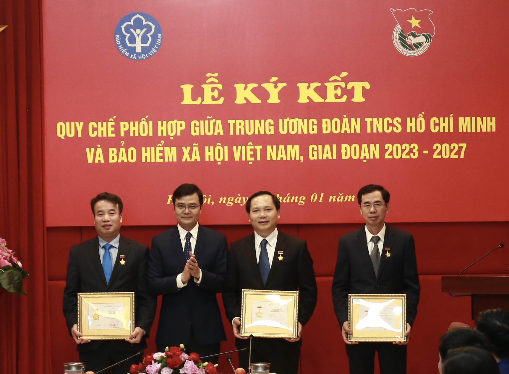 Nhân dịp này, BHXH Việt Nam đã trao kỷ niệm chương “Vì sự nghiệp BHXH Việt Nam” cho Bí thư nhất T.Ư Đoàn Bùi Quang Huy và các đồng chí Bí thư T.Ư Đoàn: đồng chí Nguyễn Ngọc Lương, Bí thư thường trực T.Ư Đoàn, Chủ tịch Hội LHTN Việt Nam; đồng chí Ngô Văn Cương, Bí thư T.Ư Đoàn; đồng chí Nguyễn Tường Lâm, Bí thư T.Ư Đoàn; đồng chí Nguyễn Phạm Duy Trang, Bí thư T.Ư Đoàn, Chủ tịch Hội đồng Đội T.Ư; đồng chí Nguyễn Minh Triết, Bí thư T.Ư Đoàn, Chủ tịch T.Ư Hội SVVN Việt Nam.